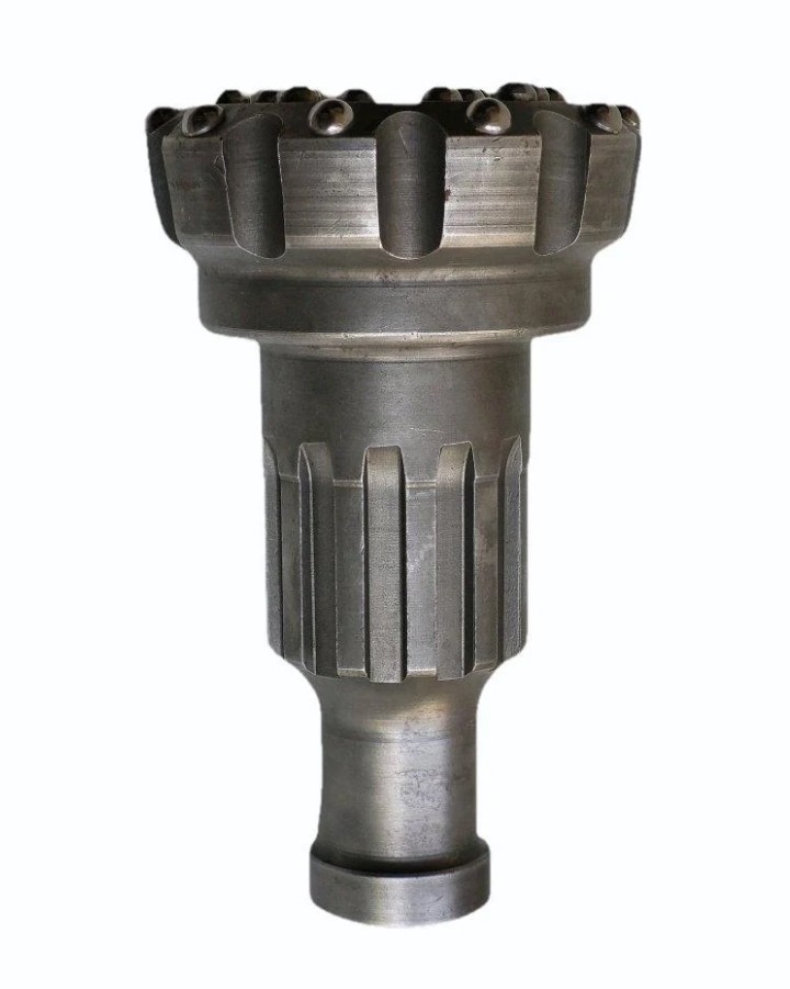 Die Bohrmaschine verwendet eine fortschrittliche Knopffestsetzungstechnologie. Die Festsetzungskraft ist gleichmäßig und es ist nicht leicht, Knöpfe zu verlieren.Es kann die Vertikalität des Bohrloches gewährleisten, so dass die Aufprallenergie auf den Felsen konzentriert werden kann.